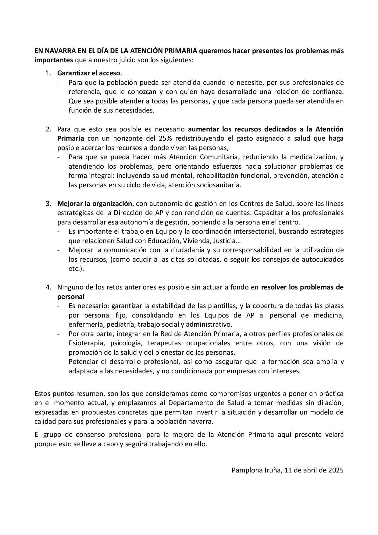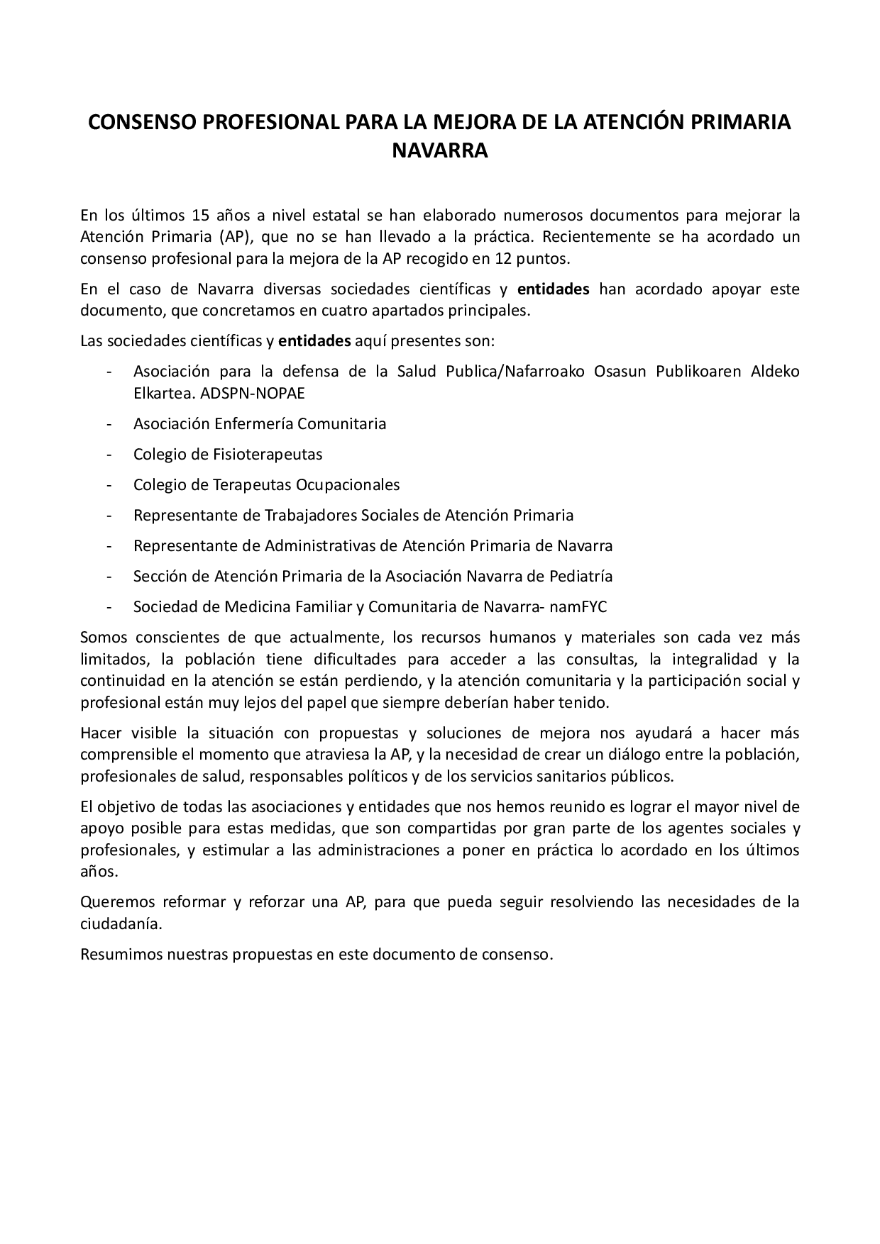 Un consenso entre entidades sanitarias de Navarra propone medidas urgentes para mejorar la Atención Primaria y garantizar el acceso equitativo y de calidad.