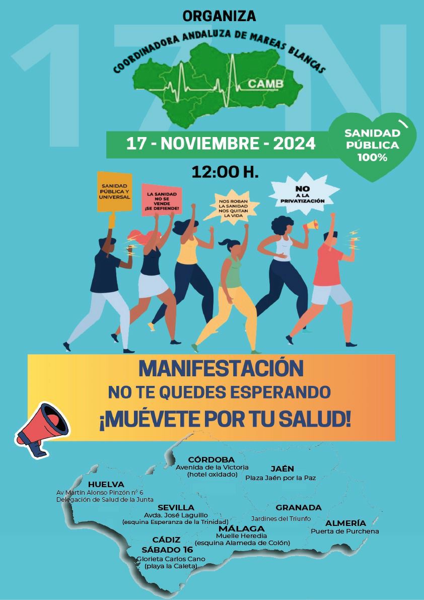 Para conseguir la vuelta a la buena Sanidad Pública que en el pasado tuvimos, accesible y de calidad, Marea Blanca pide a los ciudadanos que acudan a la manifestación que el 17 de noviembre va a celebrarse en las ocho capitales andaluzas para exigir nuestro derecho al bienestar y la salud.
